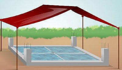 This method is adopted to prevent the evaporation of water from the surface even before setting of concrete. This method is suitable for large concrete surface such as roof, road pavement etc. This is essential in dry weather to protect the concrete work from heat, direct sun ray and wind. It also protect  from rain. In cold weather shading helps to preserve the heat of hydration of cement thereby preventing freezing of concrete. This method has a limited application only.